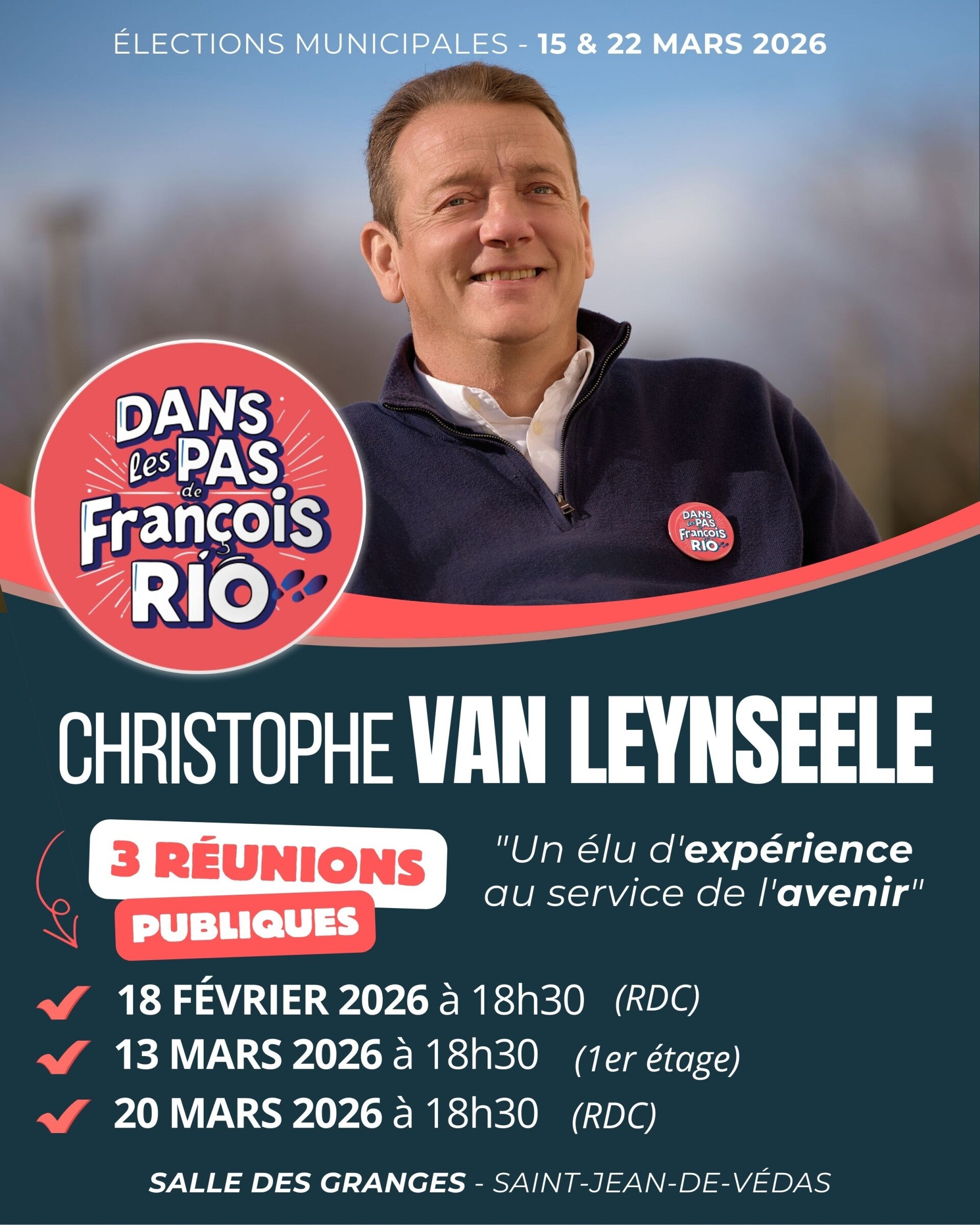 Votre soutien est essentiel pour la réussite de "Dans les pas de François Rio". En votant pour nous, vous choisissez la continuité et l'action, un projet concret pensé pour les habitants de St-Jean-de-Védas. Chaque vote est une marque de confiance qui nous encourage à aller de l'avant et à réaliser nos engagements. Contribuez au dynamisme de notre ville.